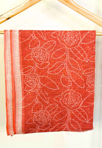 Orange Dots Hand Block Print Kota Doria Cotton Dupatta
