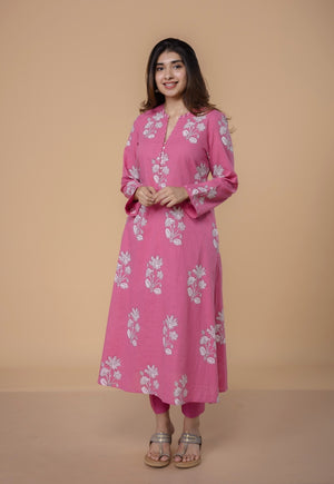 Prita Pink Solid Slub Cotton Narrow Pant