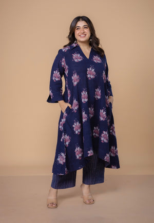 Prita Purple Solid Slub Cotton Narrow Pant