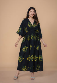 Rose Pink Dabu Handblock Printed Slub Cotton Kaftan Dress.