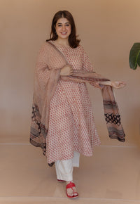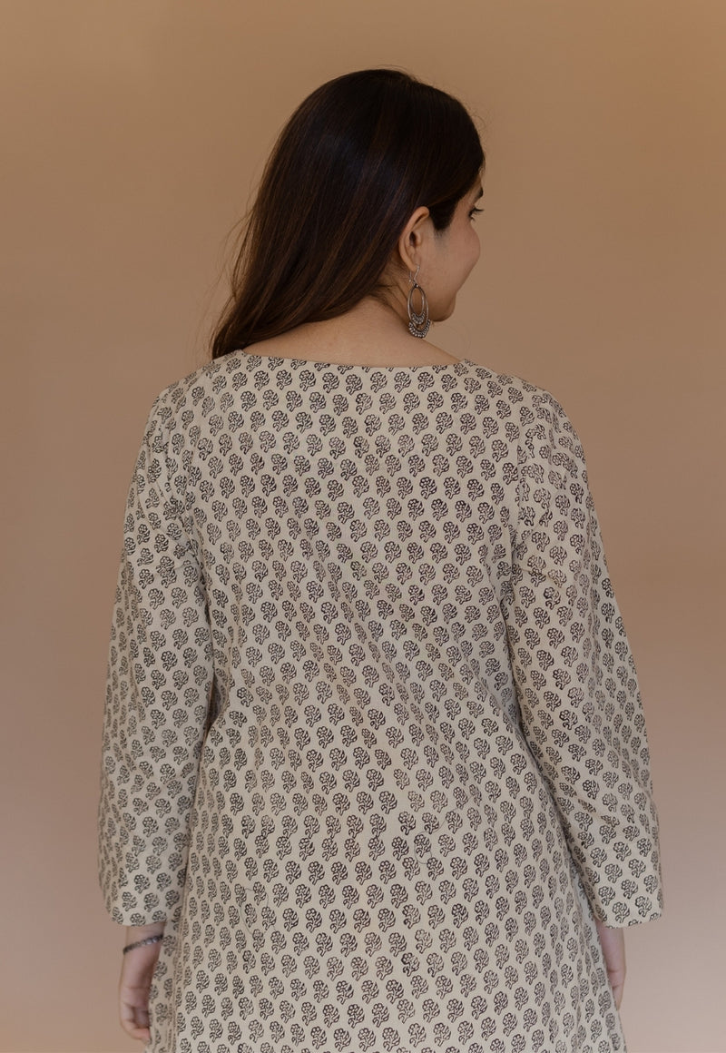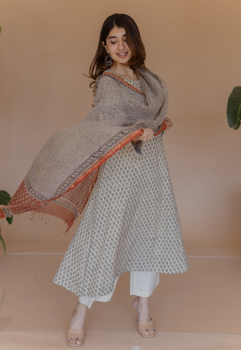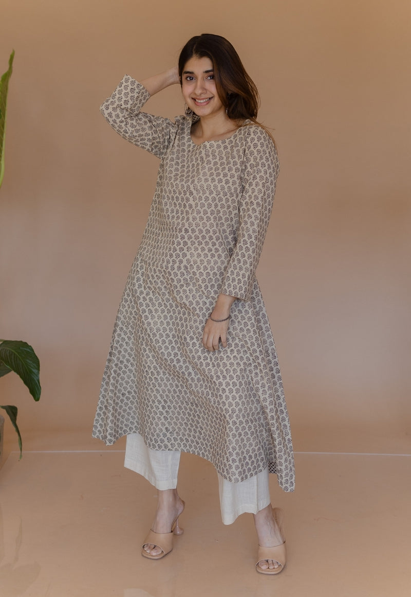 Shriya Off White Bagru Cotton A Line Kurta