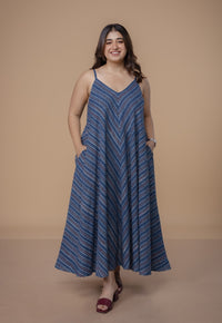 Red Dabu Handblock Printed Slub Cotton A Line Dress.