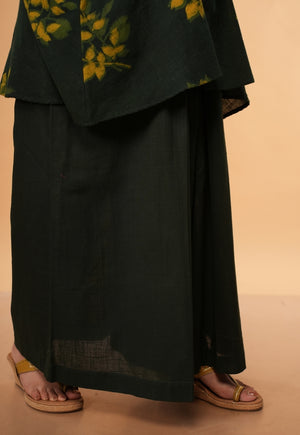 Dark Green Dabu Handblock Printed Slub Cotton A Line Short Top.