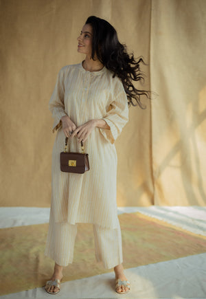 Ayaat Cream Hand Block Print Slub Cotton Anti-Fit Kurta
