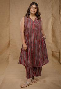 Grey Ajrakh Handblock Printed Cotton A Line Co-Ord Set.