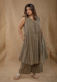 Maroon Ajrakh Handblock Printed Cotton A Line Co-Ord Set.