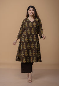 Sayali Brown Ajrakh Cotton A Line Kurta