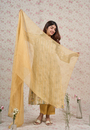 Ivy Yellow Sanganeri Mul Cotton Jhabbha Kali Kurta with Bead Work