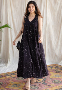 Brick Red Ajrakh Handblock Printed Cotton A Line DressÂ