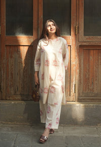 Teal Blue Dabu Handblock Printed Mul Cotton Straight Co-Ord Set.