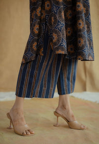 Pink Hand Block Print Slub Cotton Straight Pant.