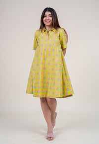 Srisha Blue Dabu Mul Cotton A Line Dress