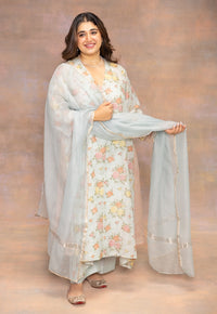 Rois White Sanganeri Chanderi Silk A Line Kurta with Hand Embroidery