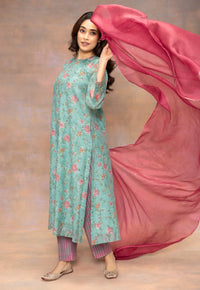Melon Pink Solid Kota Doria Silk Dupatta with Mukaish Detailing