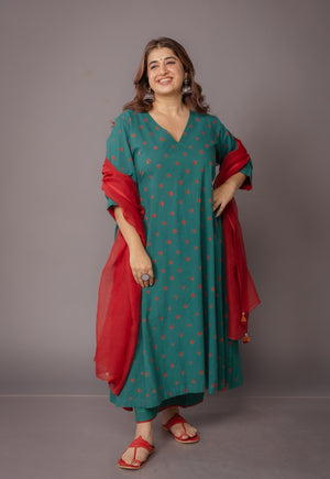 Red Solid Kota Doria Cotton Dupatta.