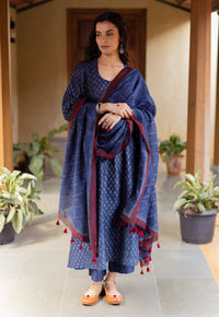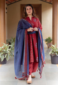 Advika Madder Ajrakh Chanderi Silk Kali Kurta with Hand Embroidery
