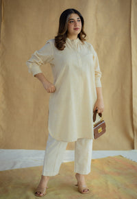Asma Mustard Hand Block Print Slub Cotton A Line Kurta with Hand Embroidery