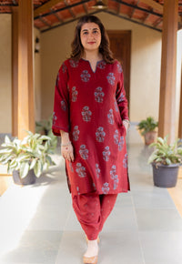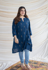 Cream Ajrakh Handblock Printed Cotton Straight Kurta.