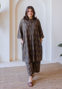 Seaweed Green Dabu Handblock Printed Cotton Anti-Fit Kurta.