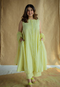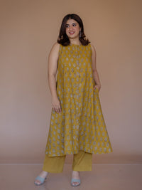 Blue Handblock Printed Slub Cotton A Line Kurta.
