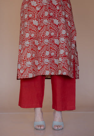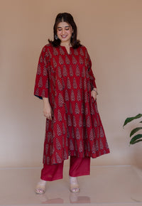 Nyra Red Bagru Cotton Jhabbha Kali Kurta