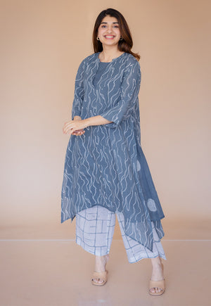 Cadet Blue Batik Handblock Printed Mul Wide Pant.
