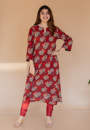 Miral Red Solid Slub Cotton Churidar