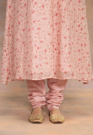 Rose Pink Sanganeri Chanderi Silk Kali Kurta with Hand Embroidery