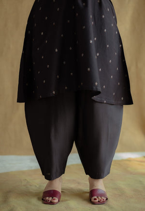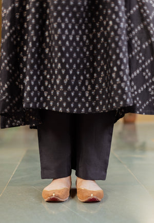 Melina Black Ajrakh Chanderi Silk Jhabbha Kali Kurta with Hand Embroidery