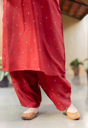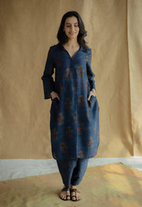 Zehra Madder Ajrakh Chanderi Silk A Line Kurta with Hand Embroidery