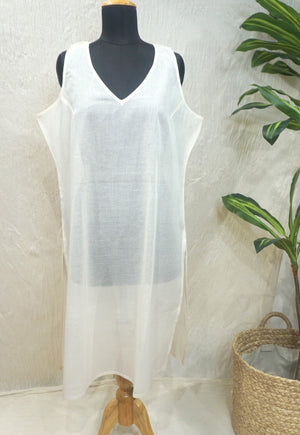 White Handblock Printed Cotton Jhabbha Kali Kurta