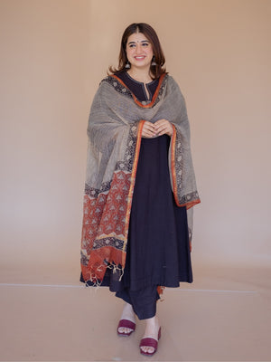 Off White Bagru Handblock Printed Natural Dyed Cotton Straight Kurta.