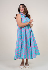 Charcoal Dabu Handblock Printed Slub Cotton A Line Dress.