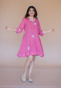 Powder Blue Batik Handblock Printed Mul A Line Dress with Mul Lining.