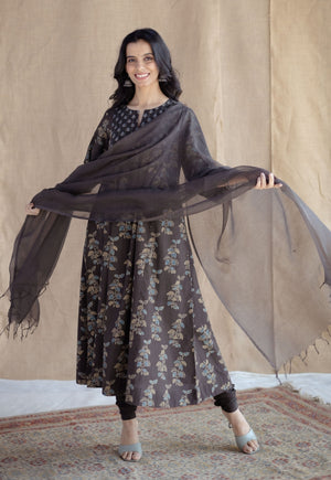 Charcoal Solid Kota Doria Cotton Dupatta.