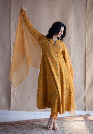 Mustard Solid Kota Doria Cotton Dupatta.