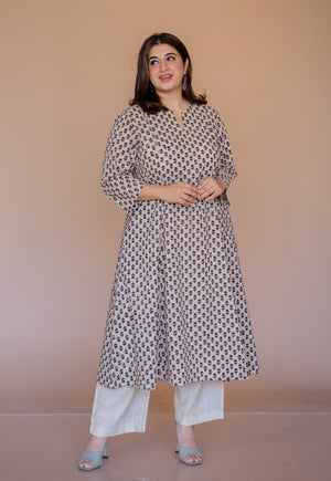 Shriya Off White Bagru Cotton A Line Kurta