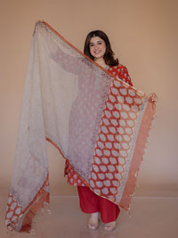 Off White Jaal Bagru Kota Doria Cotton Dupatta