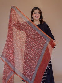 Off White Jaal Bagru Handblock Printed Natural Dyed Kota Doria Cotton Dupatta.