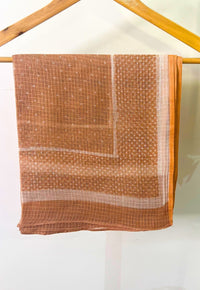 Yellow Floral Hand Block Printed Kota Doria Cotton Dupatta.