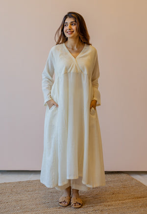Off White Solid Mul Cotton A Line Slip.