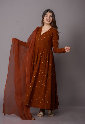 Burnt Brown Solid Kota Doria Cotton Dupatta.