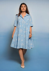 Srisha Brown Dabu Slub Cotton A Line Dress