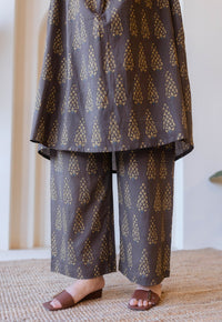 Charcoal Ajrakh Handblock Printed Cotton Straight Pant.
