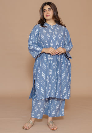 Blue Ikkat Handwoven Cotton Straight Pant.