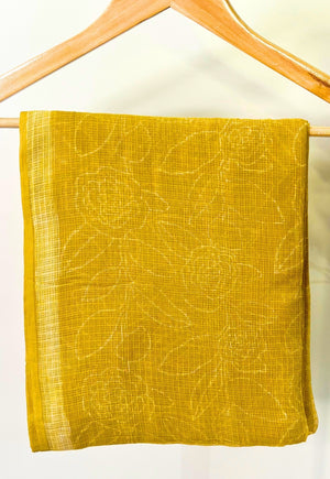 Yellow Handblock Printed Slub Cotton Straight Kurta.