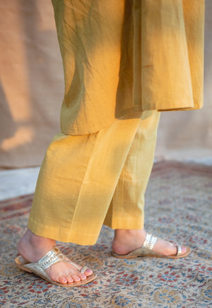 Afira Yellow Hand Block Print Slub Cotton Straight Kurta