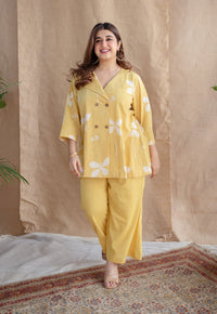 Samita Blue Straight Dabu Slub Cotton Co-ord Set (Set of 2)