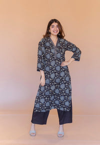 Madder Bagru Handblock Printed Cotton Straight Kurta.
