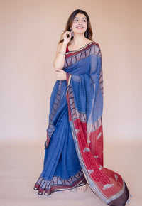 Black Jharoka Ajrakh Hand Block Print Chanderi Saree with Unstitched Blouse.